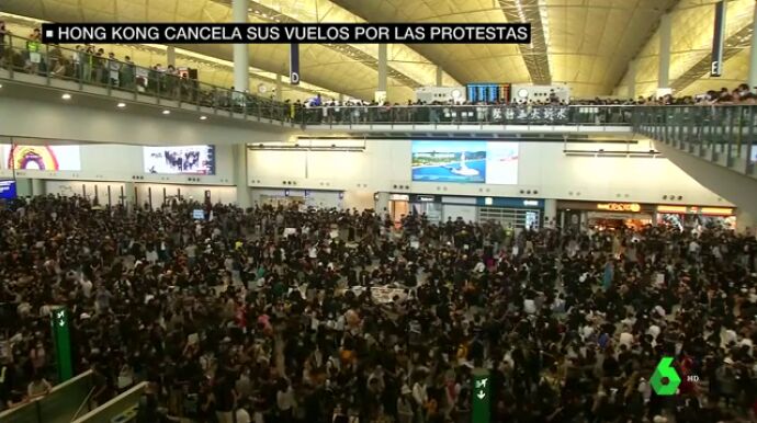 En esta nueva jornada de protestas, los manifestantes han conseguido bloquear el aeropuerto internacional de la ciudad indefinidamente, impidiendo a los pasajeros facturar. Como consecuencia, todos los vuelos han sido cancelados.