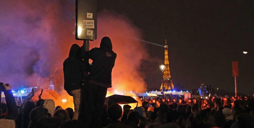 Macron salva su Gobierno por tan solo 9 votos mientras las calles de París arden por la reforma de las pensiones
