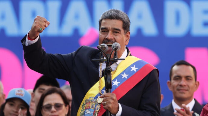 Nicolás Maduro se perpetúa en el poder y amenaza incluso con tomar las armas junto a sus aliados latinoamericanos para no soltarlo. Tras tomar posesión el viernes sin haber llegado a mostrar las actas electorales y cada vez más solo en el panorama internacional, el líder chavista avisa de que se prepara junto con Cuba y Nicaragua para "tomar las armas", de defender "el derecho a la paz" si es necesario. "Que nadie se equivoque con Venezuela", ha advertido.