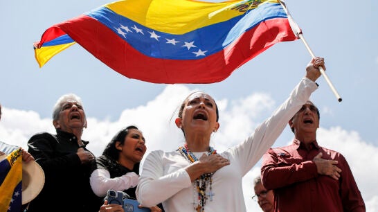 "Edmundo luchará desde afuera junto a nuestra diáspora y yo lo seguiré haciendo aquí, junto a ustedes", asegura María Corina Machado, que, como el resto de opositores, corre peligro al mantenerse en Venezuela. Fernando Arancón, director de 'El Orden Mundial', considera que el régimen de Maduro no tiene "muchos problemas en presionar a los líderes opositores".