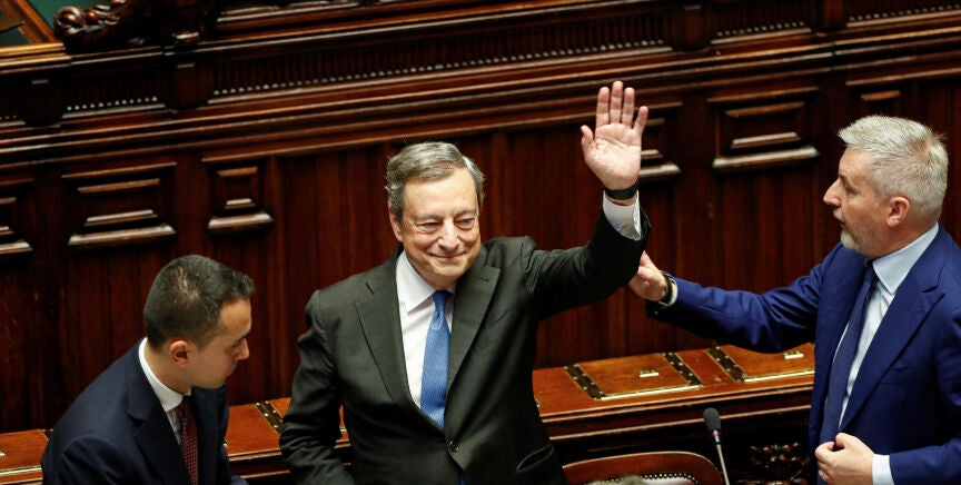 El economista encabeza una coalición de unidad nacional desde febrero de 2021 en la que estaban casi todos los partidos del hemiciclo, excepto los ultras Hermanos de Italia de Giorgia Meloni.
