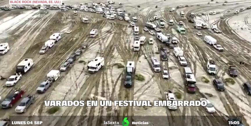 Unas 60.000 personas se han quedado atrapadas durante uno de los festivales de música más famosos del mundo, el estadounidense 'Burning man'. Las autoridades no saben cuándo van a poder rescatarlos y han empezado a racionar los suministros... aunque no la fiesta.