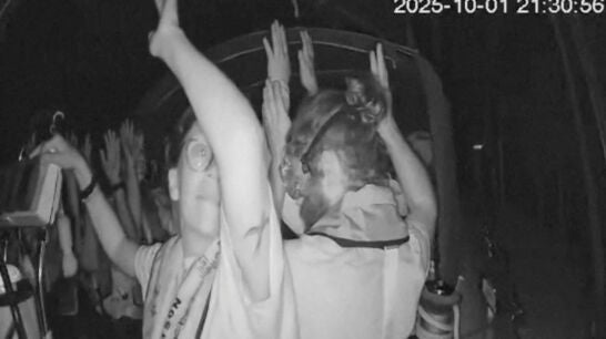 Pese a esta actitud pacífica, las fuerzas de Israel abordaron las embarcaciones con cañones de agua, asaltando los barcos con sus pistolas en alto. "¿Puedes poner las putas manos en alto?", preguntaba uno de los agentes israelíes a los integrantes de la flotilla.