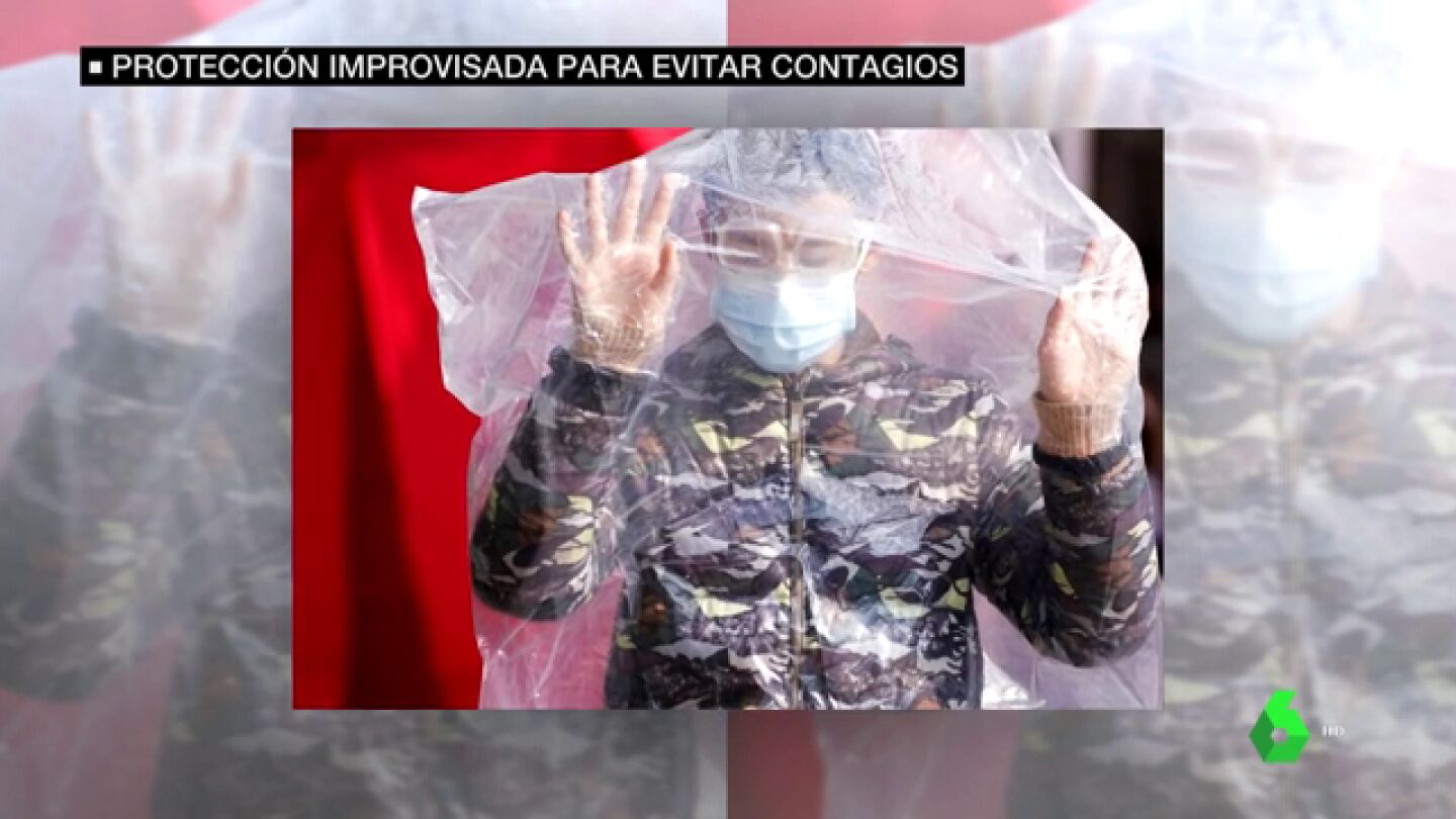 Las bolsas de plástico o incluso grandes botellas para cubrirse la cara son algunos de los improvisados métodos de los ciudadanos chinos para enfrentarse al contagio del coronavirus.
