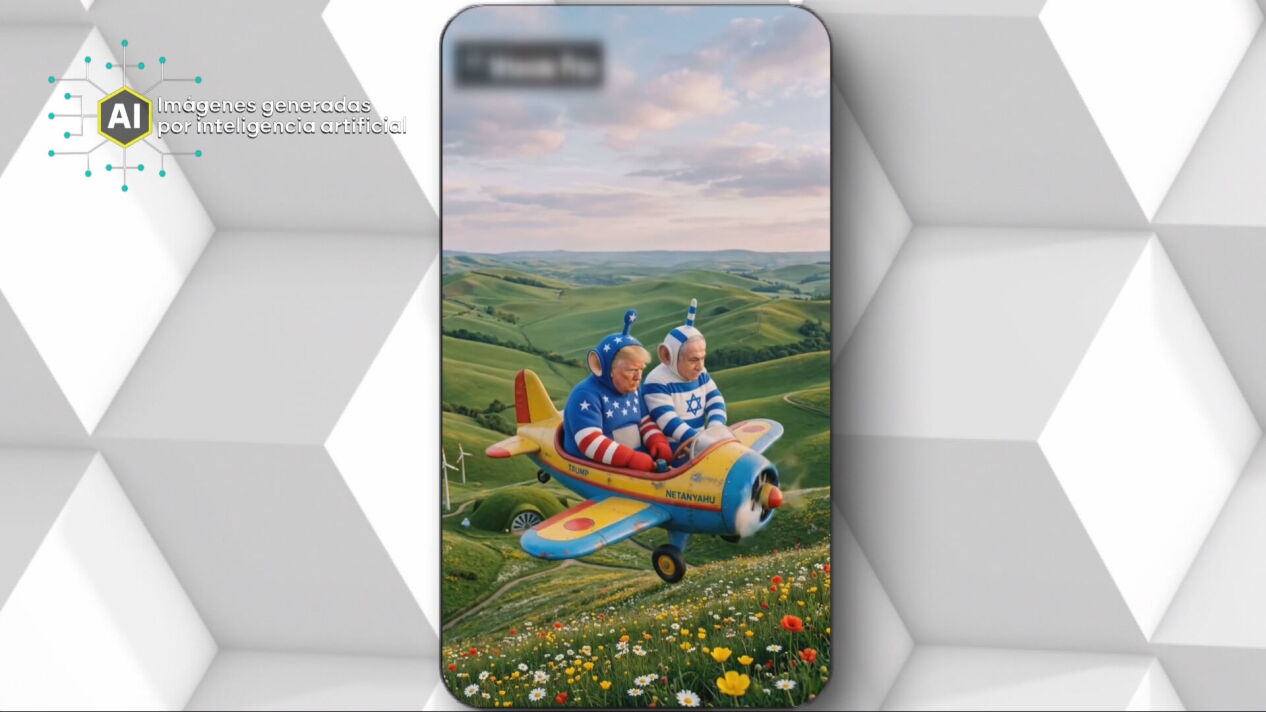 Seguimos navegando por los memes generados por IA y relacionados con la guerra en Oriente Medio y descubrimos otra burla: han convertido a Donald Trump en un Teletubbie. Como si la guerra fuera un juego de niños, aparece animado por sus palmeros: Marco Rubio y Pete Hegseth.