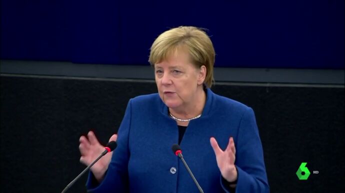 Contundente mensaje de Merkel en el Parlamento europeo. La canciller alemana ha abogado, apoyando aMacron frente a Trump, por la creación de un ejército europeo, que complemente a la OTAN. En un apasionado discurso, Merkel ha ensalzado la "solidaridad", la "tolerancia" y derechos como la libertad de expresión como "valores europeos".
