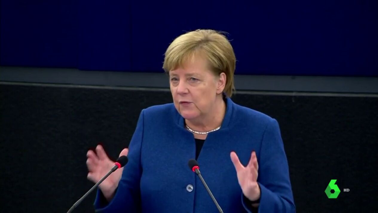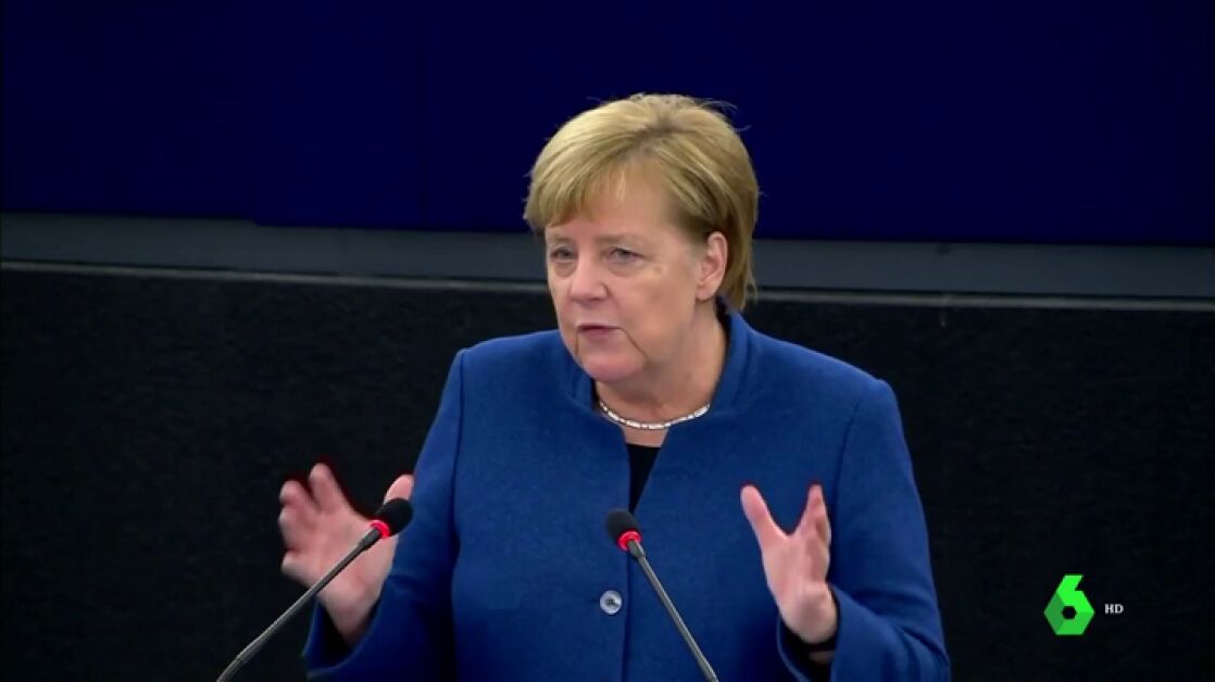 "Debemos trabajar con vistas a crear un día un auténtico ejército europeo", dijo Merkel a los eurodiputados dos días después de la conmemoración del centenario en París del armisticio que puso fin a la Primera Guerra Mundial.