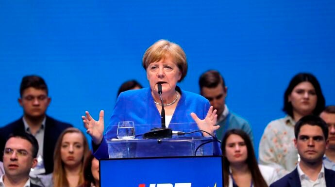 En la recta final de la cita con las urnas, Merkel identifica al enemigo: "Patriotismo y Unión Europea no son contradictorios, el nacionalismo es el enemigo del proyecto europeo".