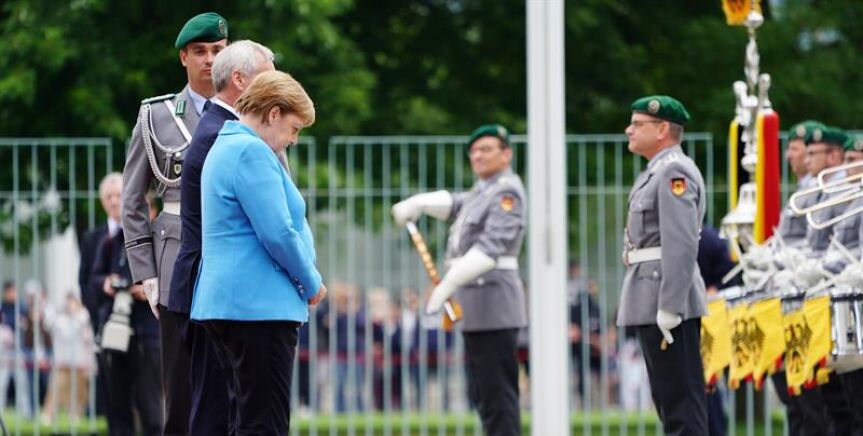 La canciller alemana, Angela Merkel, cuyo estado de salud tras dos episodios de espasmos en sendos actos públicos en pocos días ha despertado preocupación, volvió a sufrir un visible temblor corporal durante una ceremonia oficial.