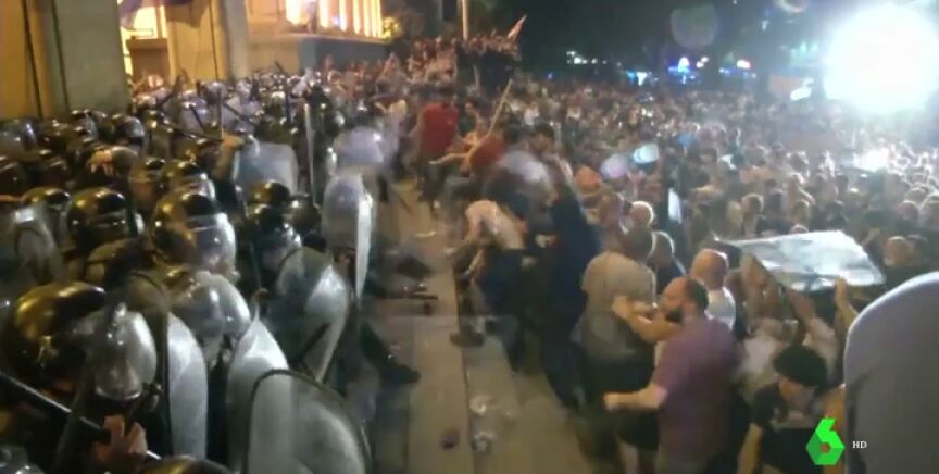Miles de personas han intentado asaltar el Parlamento en Georgia después de que un diputado ruso se sentase en el escaño del presidente de la cámara Irakli Kobajidze, que acaba de dimitir.