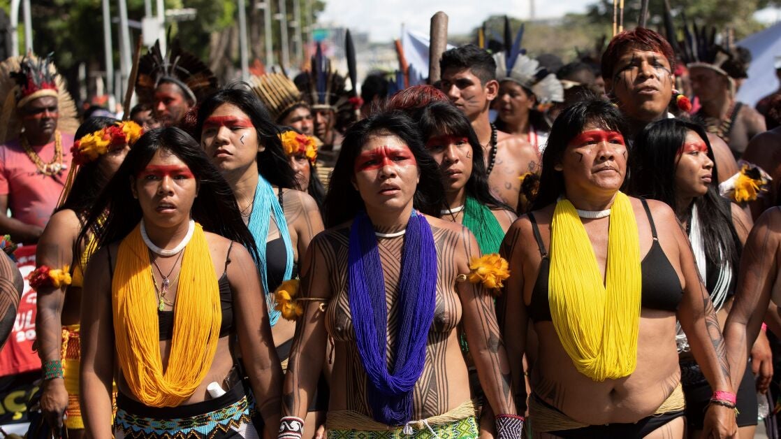 Miles de personas indígenas marcharon hacia las oficinas gubernamentales en la capital de Brasil, Brasilia, para protestar contra las políticas del presidente del país, Jair Bolsonaro, que amenazan sus tierras y que aseguran que lo único que pretenden es "matar a nuestra gente", según han explicado varios indígenas.
