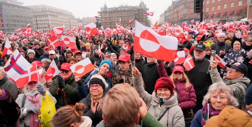 Miles de personas se han manifestado en las principales ciudades de Dinamarca para protestar contra las presiones del presidente de Estados Unidos, Donald Trump, para la anexión de Groenlandia. En Nuuk, la capital groenlandesa, se han leído lemas como "Ahora Nuuk" y "Manos fuera de Groenlandia". En Dinamarca, las protestas se han concentrado en ciudades como Copenhague, donde miles se reunieron frente al Ayuntamiento con banderas groenlandesas y de la Unión de Kalmar. En Aarhus, se coreó "Make America go away", parafraseando el lema de Trump. Julie Rademacher, portavoz de Uagut, destacó la importancia de la unidad ante las presiones externas. La protesta ha sido apoyada por varias organizaciones groenlandesas y ONG.
