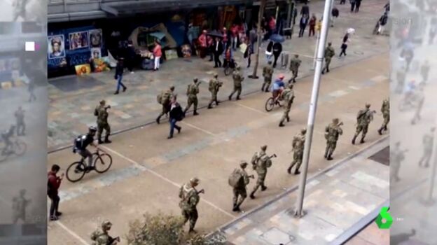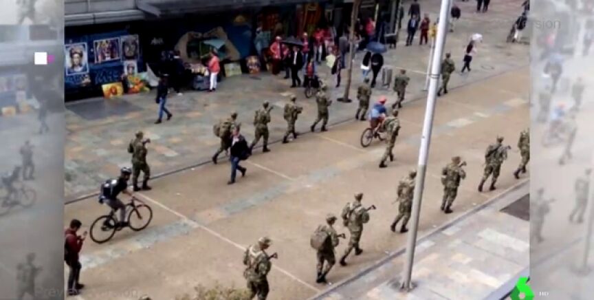 Soldados del Ejército colombiano con fusiles fueron vistos en varias avenidas de Bogotá tres días antes de la jornada de protestas sociales del jueves, lo que causó sorpresa y zozobra en los ciudadanos.