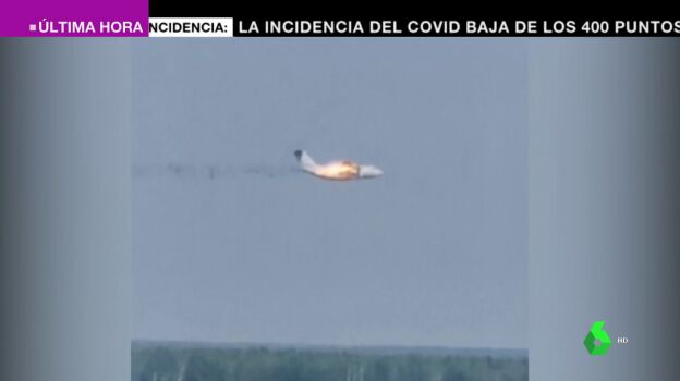 Las imágenes del momento en el que un avión militar ruso empieza a arder en pleno vuelo son estremecedoras. Algunos testigos han podido presenciar cómo el aparato estallaba en llamas en el aire.