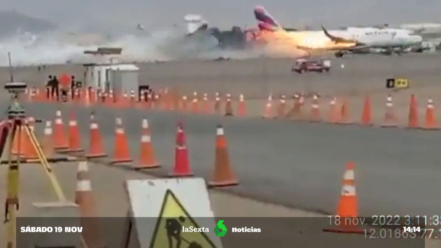 "Un avión que estaba despegando impactó su ala derecha con la autobomba (camión de bomberos) del aeropuerto, en el cual, debido al impacto, murieron dos bomberos", ha informado el comandante general del Cuerpo de Bomberos, Luis Ponce. Un tercer bombero presenta heridas de gravedad. La empresa operadora del aeropuerto Jorge Chávez, Lima Airport Partners, ha lamentado lo ocurrido.