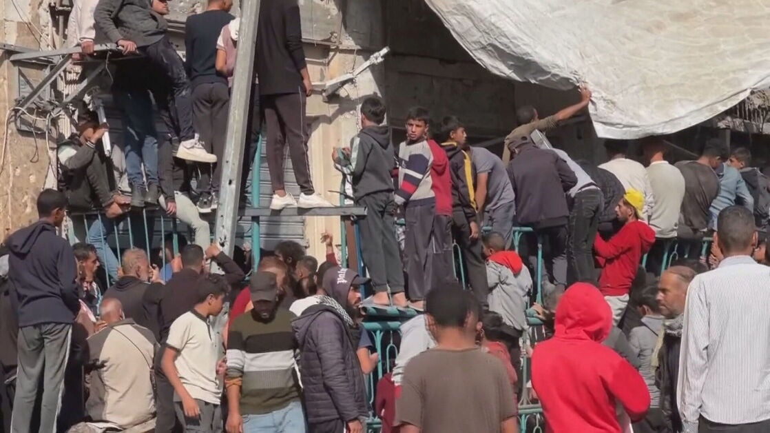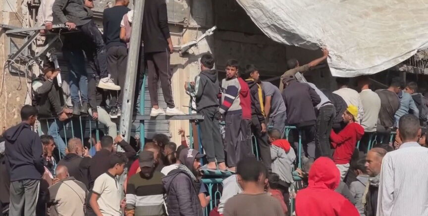 Desesperados, los gazatíes se agolpan frente a una panadería para conseguir un poco de pan. Apenas queda harina en Gaza, lo que ha obligado a muchos establecimientos a echar el cierre. Por eso, cientos de palestinos esperan durante horas para hacerse con bolsas, aunque cada vez son menos los que lo logran.