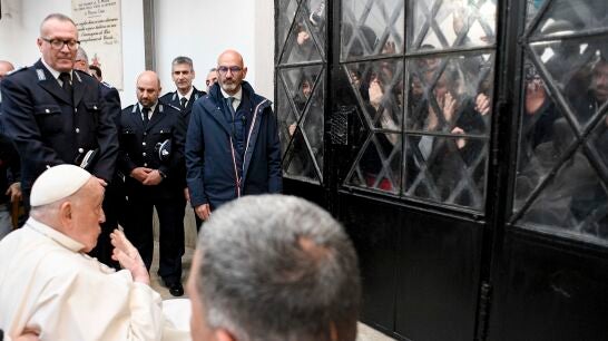 El papa entró en la prisión en la silla de ruedas que ya usaba antes de su hospitalización por sus problemas de movilidad y fue recibido por la directora de la penitenciaría, Claudia Clementi, y por numerosos miembros del personal, entre aplausos y ovaciones. Después, mantuvo un encuentro con un grupo de unos 70 presos y no utilizó las cánulas nasales por las que recibe oxígeno y con las que ha aparecido en varias ocasiones en público, según puede verse en una foto difundida por el medio oficial 'Vatican News'.