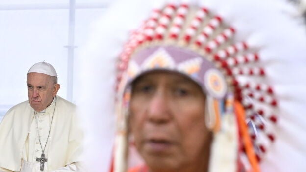 El Papa ha pedido "perdón" a las comunidades indígenas de Canadá ante las que también se ha mostrado muy "dolido" por la responsabilidad que tuvo la Iglesia en las políticas de asimilación de los internados, al tiempo que ha condenado la "mentalidad colonialista de las potencias". "Me encuentro entre ustedes porque el primer paso de esta peregrinación penitencial es el de renovar mi pedido de perdón y decirles, de todo corazón, que estoy profundamente dolido: pido perdón por la manera en la que, lamentablemente, muchos cristianos adoptaron la mentalidad colonialista de las potencias que oprimieron a los pueblos indígenas", ha dicho el pontífice en su primer encuentro con las poblaciones indígenas First Nations, Métis e Inuit en Maskwacis, una ciudad a 70 kilómetros al sur de Edmonton, donde aterrizó este domingo.