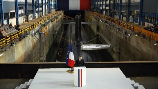 Es una imagen que dice mucho. Una que habla de cómo está Francia a nivel militar. De la decisión de Emmanuel Macron sobre su arsenal nuclear. Sobre un armamento que solo ellos disponen en la Unión Europea. Una imagen en la que el dirigente galo aparece cantando La Marsellesa y en la que de fondo se ve un submarino nuclear.