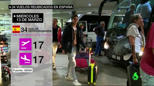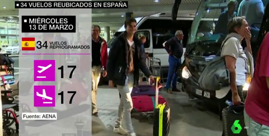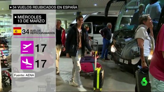 En total se vieron afectados nueve vuelos en España, dejando en tierra a varios pasajeros en Gran Canaria. Este miércoles el cierre aéreo ha obligado a reprogramar 34 vuelos en nuestro país, algo que no ha preocupado a la mayoría de pasajeros.