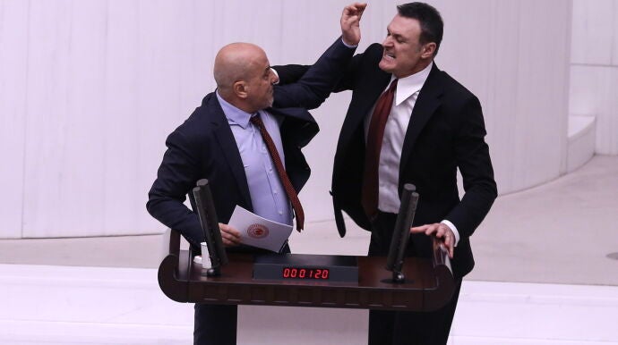 Una pelea en el parlamento de Turquía por el encarcelamiento de un diputado acaba con varios heridos y una hospitalizada