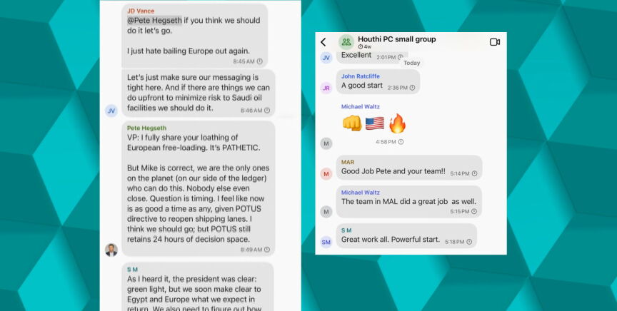 Un fallo de seguridad de proporciones insólitas ha dejado al descubierto información ultrasecreta del Gobierno de EEUU sobre los ataques a los hutíes en Yemen. Durante diez días, Jeffrey Goldberg, redactor jefe de 'The Atlantic', tuvo acceso a un chat privado donde altos cargos del Ejecutivo de Trump discutían, con absoluto descaro, los detalles operativos de la ofensiva militar.