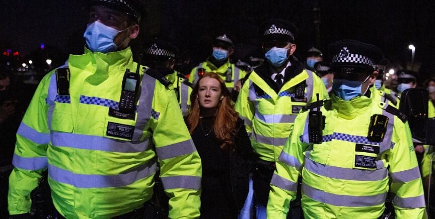 Indignación en Reino Unido por la intervención de las fuerzas de seguridad durante la vigilia por la joven Sarah Everard, asesinada por un policía, en la que agentes utilizaron la fuerza para dispersar a las mujeres que estaban congregadas.