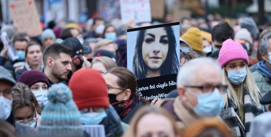 Miles de personas se han manifestado por toda Polonia en protesta contra la ley del aborto tras la muerte de una embarazada a la que, según su familia, podía haber salvado este procedimiento. En 2020, una sentencia del Tribunal Constitucional polaco ilegalizó el aborto prácticamente en todos los supuestos.