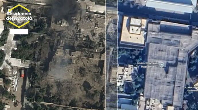 Si le interesa, el ejército israelí es capaz de llevar a cabo ataques de altísima precisión, como con el que logró eliminar al que era el líder supremo de Irán desde hace 40 años, Ali Jamenei. Entre sus operaciones más llamativas, la de hackear todas las cámaras de tráfico de Teherán para conocer cada movimiento del ayatolá. En las imágenes sobre estas líneas se pude ver cómo lucía desde el aire el lugar de trabajo de Jamenei padre y cómo acabó tras el mortal bombardeo