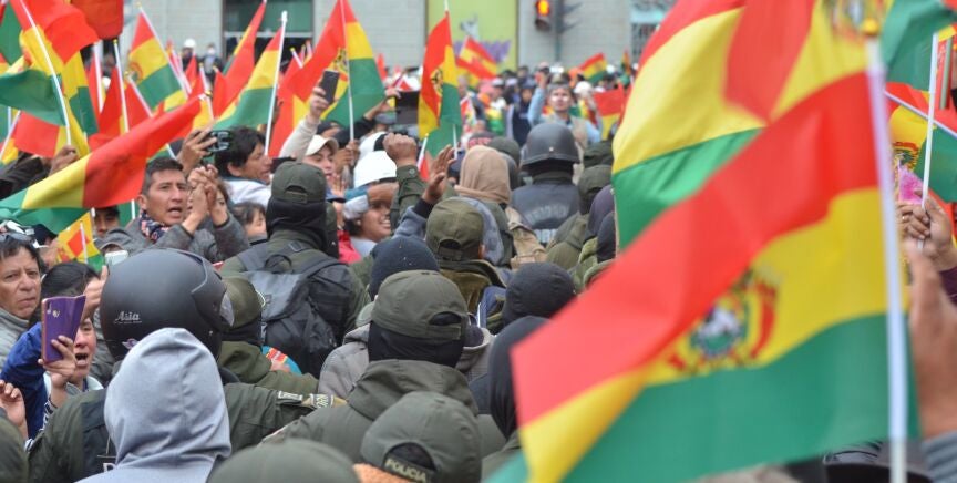 Previamente, grupos de manifestantes que exigen la dimisión de Morales han cercado este sábado el edificio en el que se encuentran Bolivia TV y la radio Patria Nueva, ambos medios estatales, y han intentado que dejen de transmitir información.