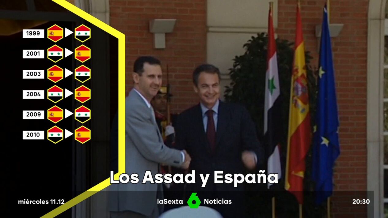 La primera de ellas se produjo en 1999, cuando el entonces presidente, José María Aznar, visitó Damasco para estrechar lazos con el dictador padre. Casi dos años más tarde, en mayo de 2001, al poco de llegar al poder, Bashar Al Assad eligió nuestro país como primer destino de su primera gira europea. Detalle que el entonces rey Juan Carlos devolvió en octubre de 2003, aterrizando en la capital siria para "reforzar los lazos políticos, económicos y culturales".