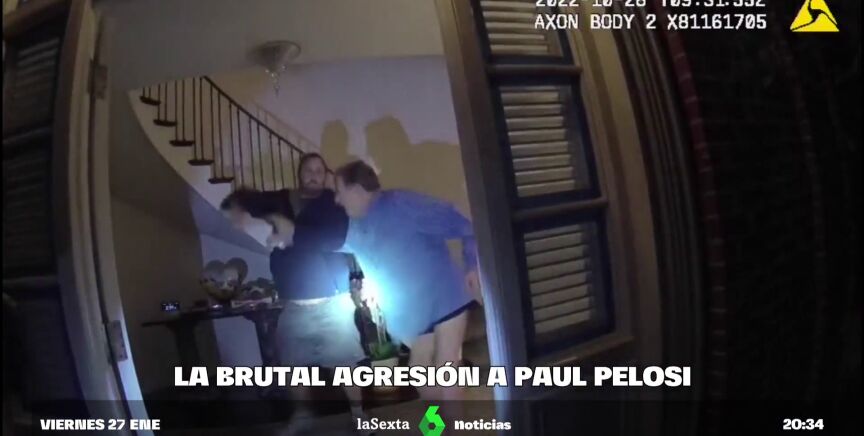 Las imágenes de seguridad muestran al agresor, David de Pape, irrumpiendo en la residencia de los Pelosi. Tras recibir la llamada del marido de Nancy Pelosi, la Policía se presenta en la casa: al abrir la puerta, los agentes ven a un hombre sujetando un martillo y agarrando del brazo a Paul Pelosi, tal y como puede verse en el vídeo de la cámara corporal de los agentes.