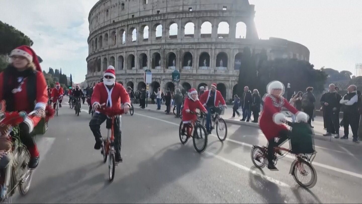 Este 25 de diciembre, el espíritu navideño se manifiesta de diversas formas alrededor del mundo. Desde Santa Claus surfeando en Río de Janeiro hasta cientos de Papás Noel en bicicleta en Roma recaudando fondos para niños enfermos. En Budapest, se celebran carreras con participantes ligeros de ropa. Sin embargo, no todo es alegría, ya que en Ohio, un Papá Noel fue detenido por exceso de velocidad. Mientras tanto, en Siria, la Navidad se celebra públicamente por primera vez en años, contrastando con Corea del Norte, que exhibe misiles en lugar de árboles. En California, las inundaciones han provocado evacuaciones masivas.