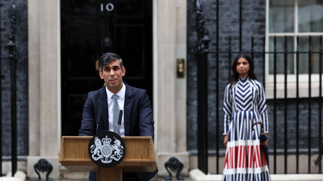 Tras abandonar por última vez la residencia del 10 de Downing Street como jefe del Gobierno, Sunak, acompañado por su mujer, Akshata Murty, ha acudido al palacio para la formalidad de rigor.