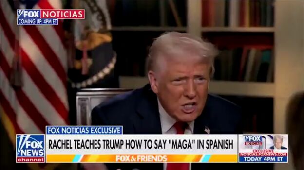 Clases de español en la 'Fox'. Es el surrealista momento que deja la última entrevista de Donald Trump en su cadena amiga, más concretamente, en el programa 'Fox Noticias'. Allí, la periodista hispana Rachel Campos-Duffy, que no solo es afín a Trump, sino que además está casada con su secretario de Transportes, se propuso enseñarle a decir su famoso eslogan 'Make America Great Again' en español.