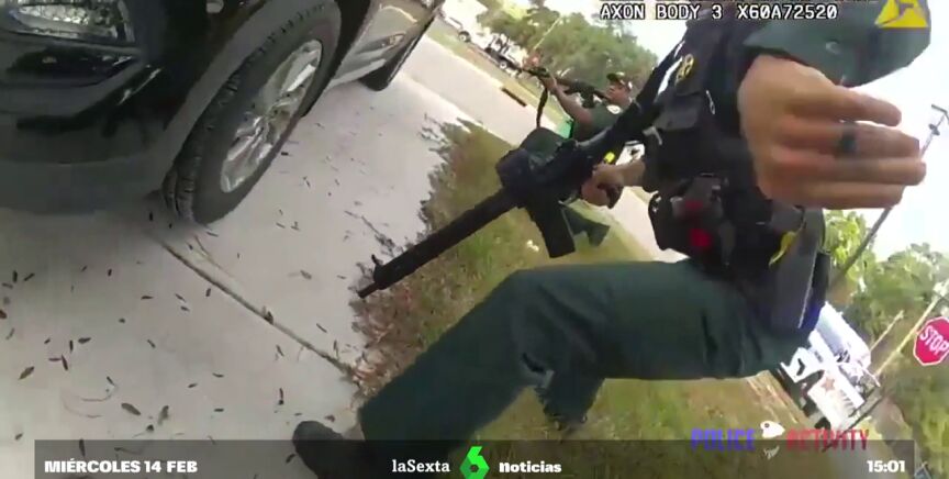 Después de abrir fuego, el agente se desploma, entre gritos, como herido, y sigue disparando, ya sin un claro objetivo. Mientras él se arrastra para ponerse a cubierto, gritando "¡estoy aquí, estoy aquí!", su compañera policía también dispara... por si acaso. Porque en el vídeo de la 'bodycam' difundido ahora se la oye dudar: desde la otra punta de la calle le pregunta.
