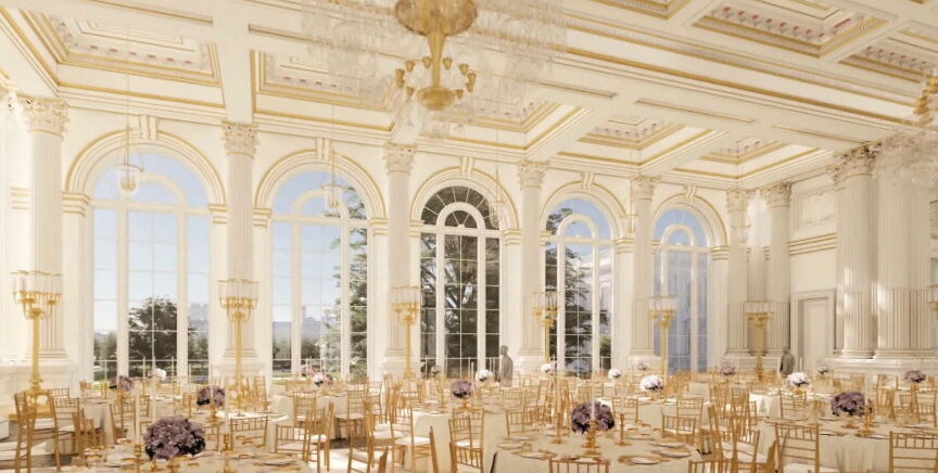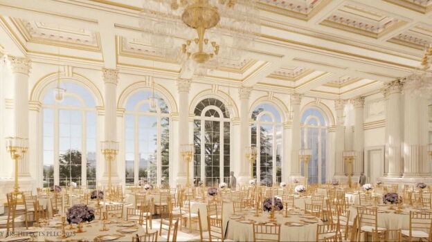 Una sala de más de 8.000 metros cuadrados que solo sería la cúpula de un búnker militar, un proyecto que está costando 400 mil millones de dólares que está pagando él mismo y sus socios empresarios: "Tiene cristales antibalas, techos y cielorrasos a prueba de drones, todo es a prueba de drones y balas. Todo el dinero pagado lo he aportado yo y los donantes. No se ha gastado ni un céntimo del gobierno en el salón de baile".