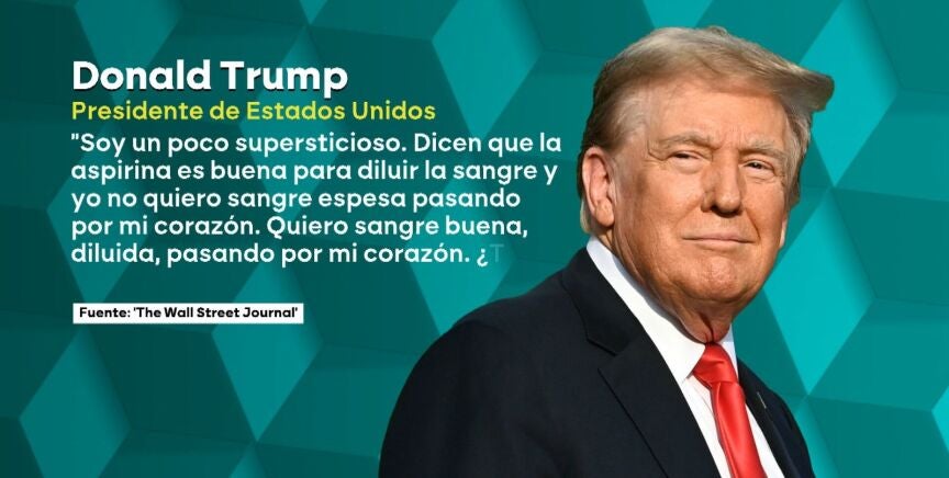 Sin embargo, las cantidades según las indicaciones de su médico son totalmente diferentes a las reales y es que Trump toma 325 miligramos de aspirina al día, el cuádruple de la recomendada.