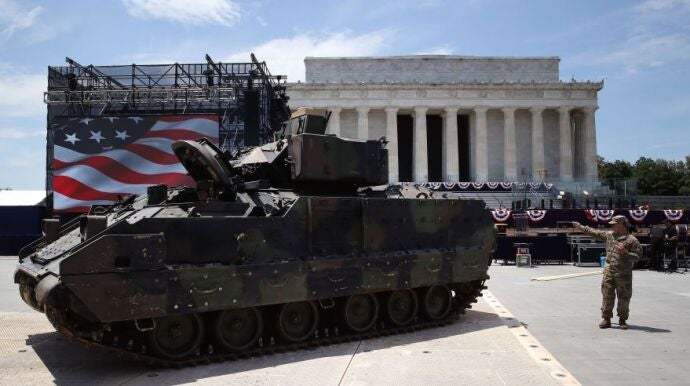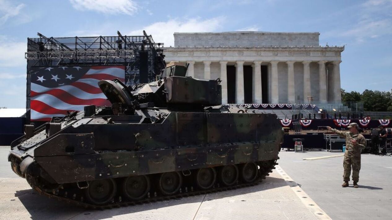 Los tanques ya están en el centro de Washington para la gran fiesta patriótica del presidente de EE.UU., Donald Trump, cuya celebración militarista del 4 de julio ha atraído a la capital tanto a simpatizantes del mandatario como a sus críticos, incluido el ya famoso globo del "bebé Trump".
