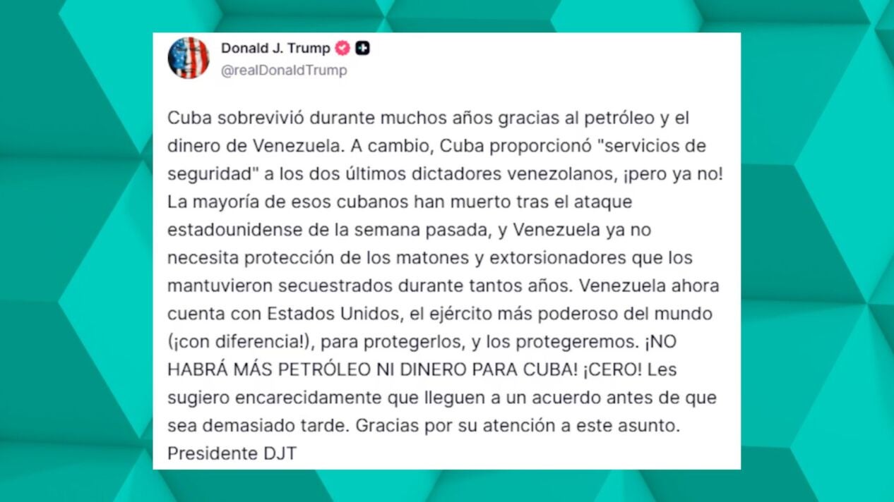 El contexto El presidente estadounidense ha expuesto en su red social que a cambio de riquezas, los cubanos proporcionaron 'servicios de seguridad' a los dos últimos dictadores venezolanos: "La mayoría de ellos han muerto tras el ataque estadounidense de la semana pasada".
