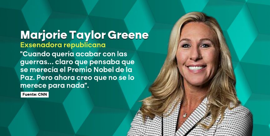 Y no es la única que ha dejado atrás a Trump. No es tan solo ella quien ahora reniega del presidente al que apoyaron sin cuestionarse nada. Porque Marjorie Taylo Greene, exconresista republicana que ahora se ha convertido en una enemiga más para el republicano, dice ahora que el magnate "no se merece el Nobel de la Paz": "Cuando creía que iba a acabar con las guerras claro que lo pensaba, pero ahora..."