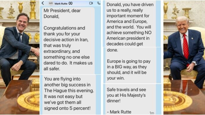 Precisamente por esta cuestión, en un primer momento no se le ha dado total credibilidad al contenido de lo publicado por el republicano. Algo que ha quedado confirmado por el mismo Rutte quien ha sostenido que no le ha importado que el presidente norteamericano haya compartido su conversación privada. En esta, además Rutte alaba a Trump por sus "acción decisiva" en Irán. "Enhorabuena y gracias por tu acción decisiva en Irán, fue realmente extraordinaria y algo que nadie más se había atrevido a hacer. Nos hace sentir más seguros", ha agregado el neerlandés.