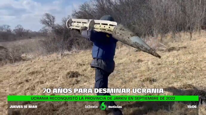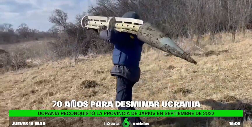 Un equipo de 'laSexta Noticias' acompaña a los desminadores ucranianos en la provincia de Járkiv. Han retirado 321.000 objetos explosivos por todo el país.