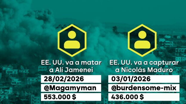 Entre algunos de los ejemplos más llamativos recogidos por laSexta, puesto que son cientos los casos que se han encontrado, está el ocurrido el 28 de febrero de 2026. Fue entonces cuando un único usuario llamado MAGA My Man apuesta en un servidor online a que EEUU iba a asesinar al ayatolá Ali Jamenei y horas después así sucede, llevándole a ganar más de medio millón de dólares. Otro caso es el del 3 de enero de 2026, cuando otro jugador gana 436.000 dólares tras apostar a que EEUU iba a capturar a Nicolás Maduro.