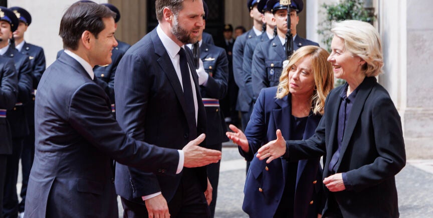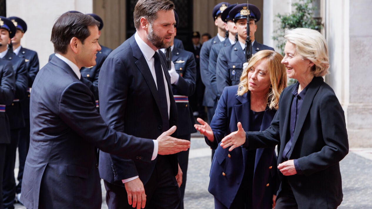 El vicepresidente estadounidense, JD Vance; la presidenta de la Comisión Europea (CE), Ursula von der Leyen, y la primera ministra de Italia, Giorgia Meloni, se reunieron este domingo en Roma, un encuentro "constructivo" en el que buscaron limar asperezas en la disputa comercial entre EEUU y Europa. "Esperamos que sea el inicio de negociaciones comerciales y beneficios mutuos a largo plazo", dijo Vance ante los medios junto a Von der Leyen y Meloni, que calificó la reunión de "debate constructivo".