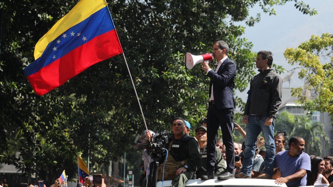 Según ha podido saber Newtral, el líder de los opositores Leopoldo López ha mantenido un encuentro con Juan Guaidó, autoproclamado presidente encargado de Venezuela, en la embajada de España en Caracas, donde se encuentra López y su familia desde la llamada al alzamiento militar contra Maduro que se produjo en Venezuela.