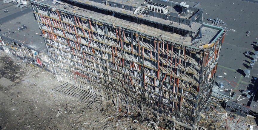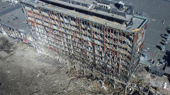 El centro ha quedado completamente calcinado tras la explosión, que se ha cobrado la vida de al menos 8 civiles.