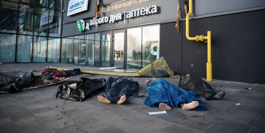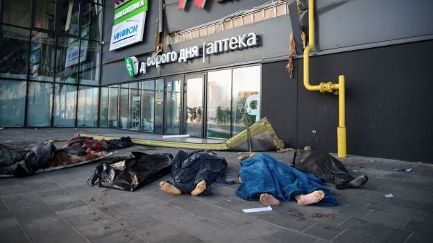 La ofensiva rusa, estancada en tierra, continúa centrándose en bombardeos a edificios civiles por aire en este vigésimo sexto día de guerra en Ucrania. Durante la madrugada, al menos ocho personas han muerto y otra ha resultado herida en un ataque de las tropas del Kremlin a un centro comercial en Podilskyi, en Kiev. El bombardeo ha provocado una gran explosión y un posterior incendio que ha calcinado decenas de vehículos del aparcamiento adyacente, así como la propia estructura del centro.