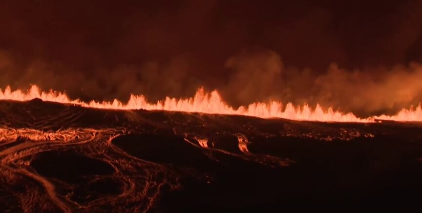 La erupción ha comenzado este jueves en la península de Reykjanes, suroeste del país. El pueblo de Grindavik ha vuelto a ser evacuado por esta quinta erupción en un año. La fisura eruptiva es de aproximadamente 3,9 kilómetros.