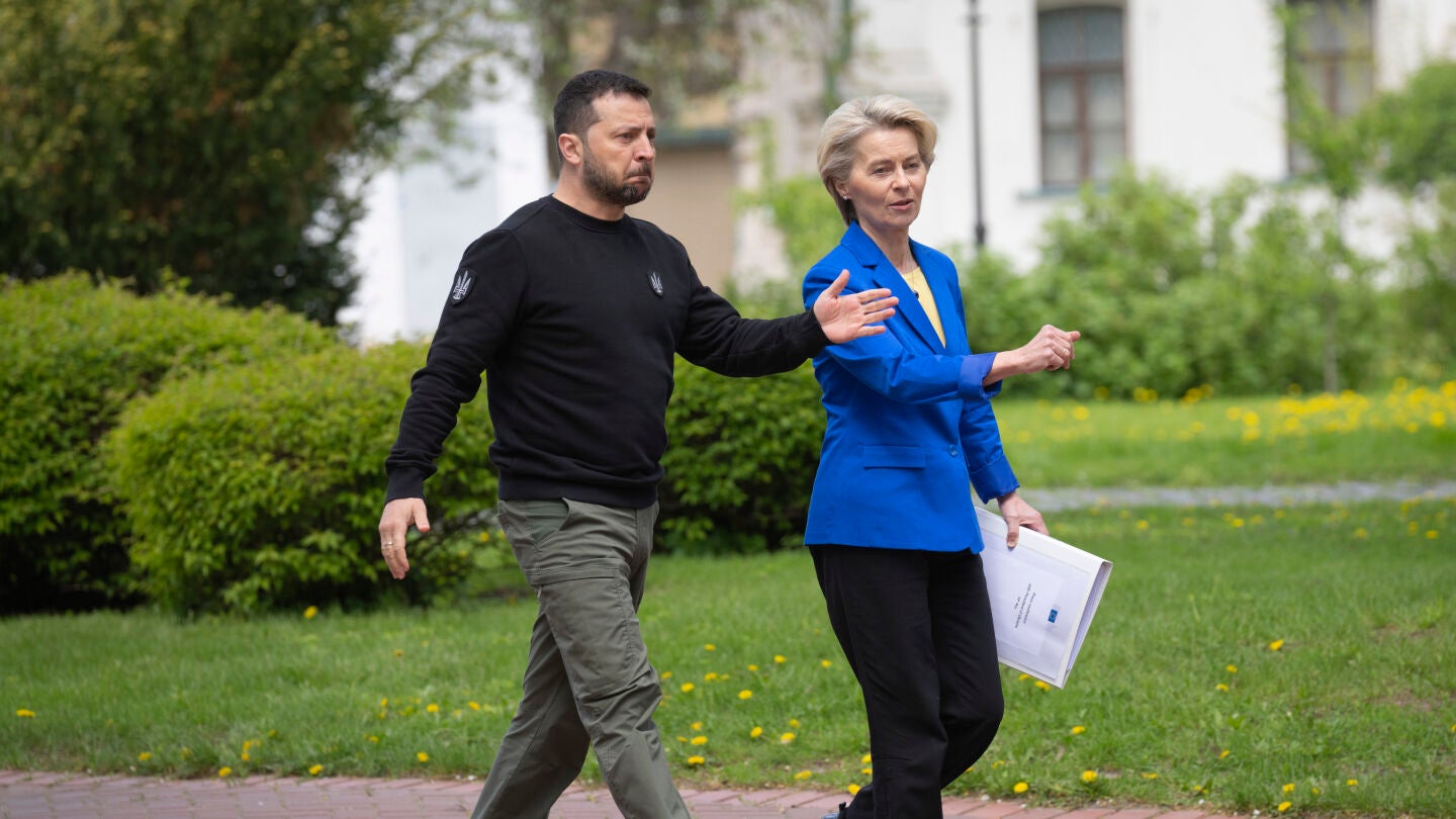La presidenta de la Comisión Europea ha viajado a Ucrania en el Día de Europa, que el país celebrará ahora cada 9 de mayo. Un encuentro en el que ha abordado con Zelenski los progresos ucranianos para adherirse al bloque comunitario.